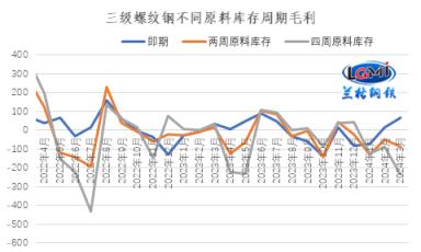 圖2 三級(jí)螺紋鋼不同原料庫(kù)存周期毛利水平變化
