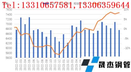 從海外厚壁無縫鋼管產(chǎn)量來看,呈現(xiàn)同比繼續(xù)回升局面。研究中心監(jiān)測(cè)數(shù)據(jù)顯示,2024年2月份,中國(guó)以外全球其他地區(qū)產(chǎn)量為6760萬噸(詳見圖3),同比增長(zhǎng)8.5%,增速較上月回升0.7個(gè)百分點(diǎn)。