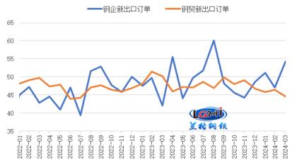 從出口訂單來看,我國(guó)厚壁無縫鋼管行業(yè)出口訂單指數(shù)有所分化;中物聯(lián)厚壁無縫鋼管物流專業(yè)委員會(huì)調(diào)查的2024年3月份厚壁無縫鋼管企業(yè)新出口訂單指數(shù)為54.3%,較上月回落7.3個(gè)百分點(diǎn),再次回升至擴(kuò)張區(qū)間(詳見圖5);網(wǎng)調(diào)研的厚壁無縫鋼管流通企業(yè)新出口訂單指數(shù)為44.6%,較上月回落1.8個(gè)百分點(diǎn),仍在收縮區(qū)間運(yùn)行。厚壁無縫鋼管企業(yè)出口訂單指數(shù)回升,將對(duì)后期我國(guó)厚壁鋼管出口形成一定帶動(dòng)。