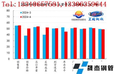 中國金屬材料流通協(xié)會、網(wǎng)聯(lián)合發(fā)布的2024年4月份中金協(xié)&網(wǎng)·厚壁無縫鋼管流通PMI指數(shù)為51.1%,較上月下降0.3個百分點,在擴張區(qū)間內略有回落。從分類指數(shù)看,構成中金協(xié)&網(wǎng)·厚壁無縫鋼管流通PMI的10個分類指數(shù)7升3降,其中銷售量、銷售價格、總訂單量、采購成本、到貨速度、融資環(huán)境和企業(yè)雇員7項指數(shù)上升,庫存水平、走勢判斷和采購意愿3項指數(shù)下降。
