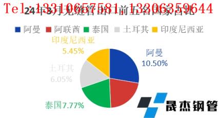 分國別來看,3月份我國無縫管的主要流向國家為阿曼、阿聯(lián)酋、泰國、土耳其、印度尼西亞,占本月出口總量的比重分別為10.98%、8.58%、8.12%、6.33%、5.69%,上述國家出口總量占本月總出口量的39.7%。由此可見,本月無縫管出口國別流向已趨于明顯,2024年國別流向或更加明顯,亞洲、非洲、歐洲國家成為我國無縫管出口的主要根據(jù)地,中東地區(qū)國家需求仍保持韌性,美洲的需求有所下滑。