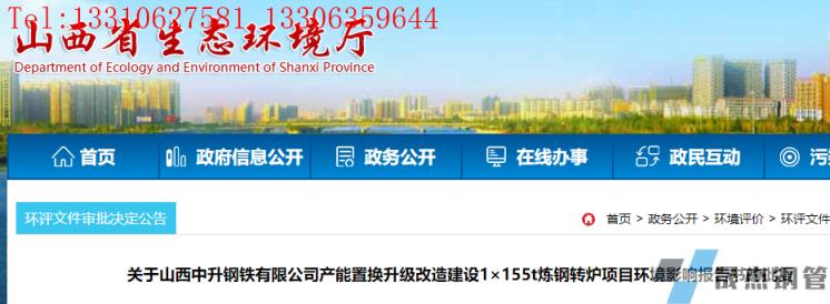 報(bào)批的申請(qǐng)》(中升申字〔2021〕72號(hào))、省生態(tài)環(huán)境保護(hù)服務(wù)中心《關(guān)于山西中升鋼鐵有限公司產(chǎn)能置換升級(jí)改造建設(shè)1×155t煉鋼轉(zhuǎn)爐項(xiàng)目環(huán)境影響報(bào)告書的評(píng)估報(bào)告》(晉環(huán)服務(wù)">