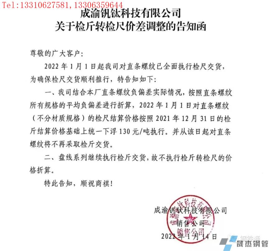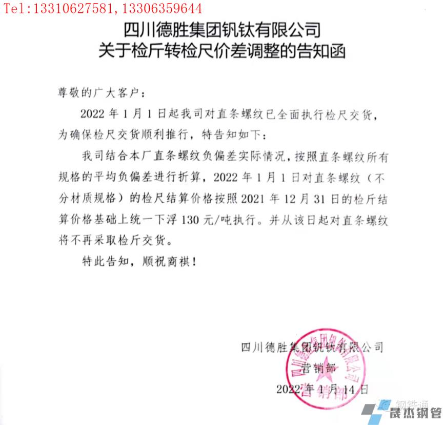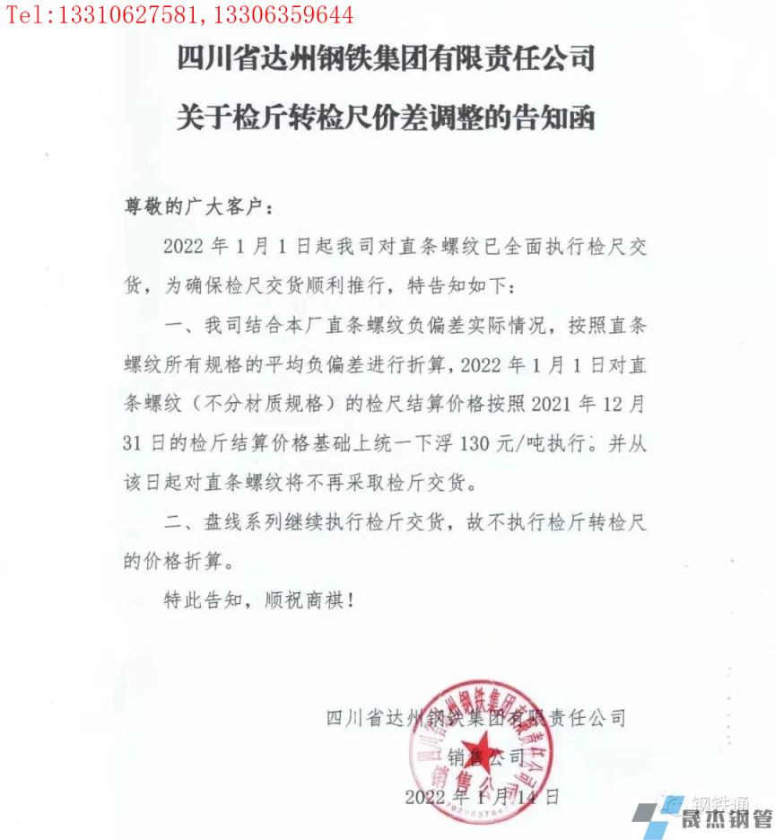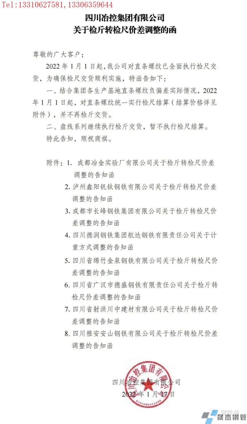 免責聲明:本網(wǎng)站(山東聊城晟杰無縫鋼管廠m.aremjf.cn)刊載的“四川多家鋼企發(fā)布檢斤轉(zhuǎn)檢尺價差調(diào)整通知”等均源于網(wǎng)絡(luò),版權(quán)歸原作者所有,且僅代表原作者觀點,本文所載信息僅供參考。轉(zhuǎn)載僅為學習與交流之目的,如無意中侵犯您的合法權(quán)益,請及時聯(lián)系刪除。本網(wǎng)站刊登此篇文章并不意味著本站贊同其觀點或證實其內(nèi)容的真實性,我們不對其科學性、嚴肅性等作任何形式的保證。如果侵犯了您的版權(quán),請盡快聯(lián)系我們予以撤銷,謝謝合作!