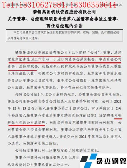 12月13日,攀鋼釩鈦董事會收到公司董事、總經(jīng)理杜斯宏因工作變動(dòng),于近日向董事會遞交報(bào)告,申請辭去公司董事、總經(jīng)理職務(wù)。杜斯宏的辭職未導(dǎo)致公司董事會成員人數(shù)低于法定最低人數(shù),根據(jù)本公司章程的有關(guān)規(guī)定,杜斯宏的辭職報(bào)告自送達(dá)董事會之日起生效。截至本公告披露日,杜斯宏未持有公司股份。杜斯宏辭職后,將不在公司擔(dān)任其他任何職務(wù)。