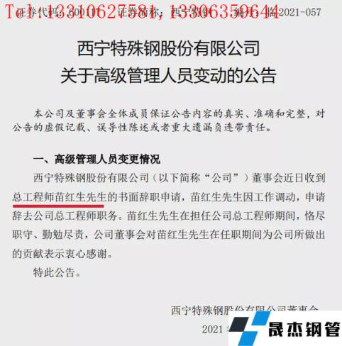 2021年12月10日,西寧特鋼發(fā)布公告,公司人事變動(dòng):董事長尹良求、總工苗紅生辭職!張伯影擬任董事!