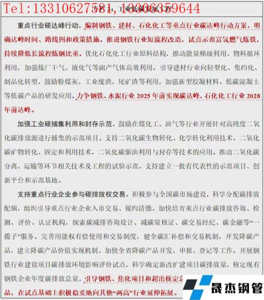 制定工業(yè)領(lǐng)域碳達峰實施方案和鋼鐵、建材、石化化工等重點行業(yè)碳達峰行動方案,推動煤炭等化石能源清潔高效利用,提高可再生能源應(yīng)用比重,有序推進鋼鐵、建材等行業(yè)碳達峰工作。加快低碳技術(shù)開發(fā),圍繞鋼鐵、化工等重點行業(yè),推動化石能源清潔高效利用等低碳技術(shù),開發(fā)一批前瞻性、戰(zhàn)略性、顛覆性技術(shù)。到2025年,推廣50項綠色低碳先進適用技術(shù)。加快工業(yè)互聯(lián)網(wǎng)、5G等新一代信息技術(shù)在綠色制造領(lǐng)域的應(yīng)用,到2025年,規(guī)模以上制造業(yè)企業(yè)關(guān)鍵業(yè)務(wù)環(huán)節(jié)全面數(shù)字化比例超過50%,鋼鐵、水泥(熟料)等行業(yè)重點企業(yè)能源管理平臺創(chuàng)建率達到100%。