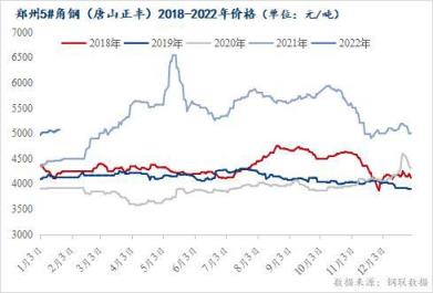 從近五年價格來看,2021年整體價格較往年明顯抬升,以鄭州5#角鋼(唐山正豐)為例,2021年均價較2020同期上升36.96%,最高點為五月份6550元/噸,比2020年十二月份峰值高1950元/噸。進入本月,河南地區(qū)型鋼價格小幅上漲,1月份雖然河南多地疫情頻發(fā),交通運輸管控加嚴,下游采購進度受限,整體需求表現(xiàn)不佳,但受到原材料鐵礦及環(huán)保政策等因素的影響,價格趨強運行。截止目前,河南疫情得以有效控制,考慮到春節(jié)假期過后,下游逐步復工,需求好轉(zhuǎn),預計市場價格有一定上漲空間。