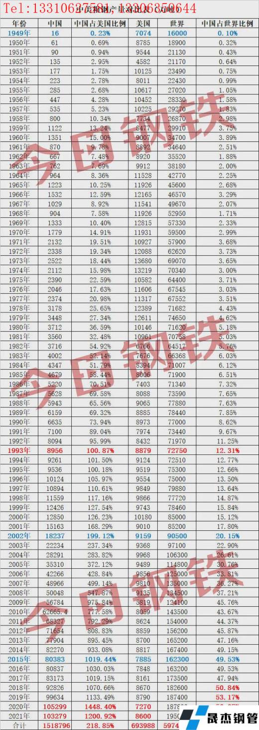根據(jù)以上情況,筆者查閱了世界鋼鐵行業(yè)協(xié)會(huì)、國家統(tǒng)計(jì)局以及其他相關(guān)渠道的數(shù)據(jù)信息,收集整理了中國、美國以及世界1949年到2021年粗鋼產(chǎn)量的數(shù)據(jù)(僅用于示意分析),以此勾勒并呈現(xiàn)中國鋼鐵產(chǎn)業(yè)發(fā)展的線條!這是中國鋼鐵工業(yè)自力更生、趕超先進(jìn)的歷史,也是中國鋼鐵工業(yè)走向世界之巔的記錄!