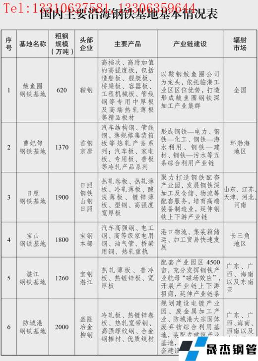 目前,我國已形成鲅魚圈鋼鐵基地、曹妃甸鋼鐵基地、日照鋼鐵基地、寶山鋼鐵基地、湛江鋼鐵基地、防城港鋼鐵基地等六大主要沿海鋼鐵基地,其中崛起的防城港鋼鐵基地粗鋼產(chǎn)量已超2000萬噸,而各個沿海鋼鐵基地的頭部企業(yè)均為鞍鋼、首鋼京唐、寶鋼等大型鋼企,輻射市場已遍及全國。