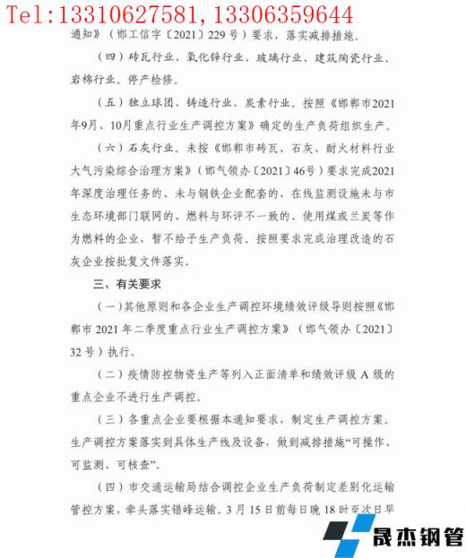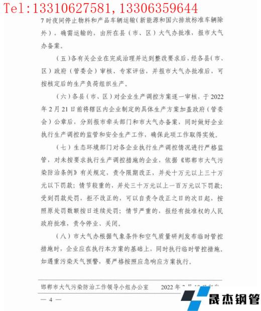 免責聲明:本網站(山東聊城晟杰無縫鋼管廠m.aremjf.cn)刊載的“限產50%!河北一地再發(fā)鋼企限產令!即日起至月底!”等均源于網絡,版權歸原作者所有,且僅代表原作者觀點,本文所載信息僅供參考。轉載僅為學習與交流之目的,如無意中侵犯您的合法權益,請及時聯(lián)系刪除。本網站刊登此篇文章并不意味著本站贊同其觀點或證實其內容的真實性,我們不對其科學性、嚴肅性等作任何形式的保證。如果侵犯了您的版權,請盡快聯(lián)系我們予以撤銷,謝謝合作!