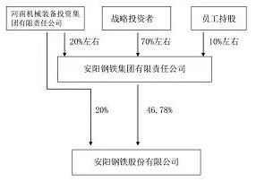 根據(jù)早前安鋼集團(tuán)混改方案:先將安鋼集團(tuán)100%股權(quán)評(píng)估后作價(jià),出資至河南省國(guó)資委全資的河南機(jī)械裝備投資集團(tuán),同時(shí)將安陽(yáng)鋼鐵20%股權(quán)無(wú)償劃轉(zhuǎn)到河南裝投集團(tuán);而后依托河南裝投集團(tuán)在產(chǎn)權(quán)交易所公開(kāi)掛牌并采取綜合評(píng)標(biāo)方式確定一名戰(zhàn)略投資者,轉(zhuǎn)讓安鋼集團(tuán)80%股權(quán);戰(zhàn)略投資者對(duì)安鋼集團(tuán)進(jìn)行增資擴(kuò)股,并實(shí)施員工持股等中長(zhǎng)期激勵(lì)。