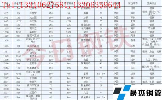 其中日照鋼鐵杜雙華以560億元人民幣榮登胡潤(rùn)排行榜312位,嘉晨鋼鐵孫壽寬以450億元人民幣榮登胡潤(rùn)第427位,沙鋼沈文榮400億元人民幣榮登胡潤(rùn)492位,還有更多優(yōu)秀鋼企老總?cè)肓性斍槿缦拢?/p>
