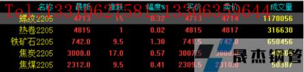 期鋼震蕩調(diào)整,主力螺紋收4713漲15漲幅0.32%,鐵礦742漲9.5,焦炭3008漲17,熱卷4815漲1,滬指3555.06跌幅0.09%