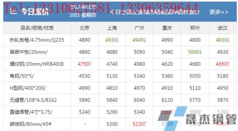 中厚板全國23個(gè)主要市場(chǎng)14-20mm普中板平均價(jià)格5031元/噸,較上個(gè)交易日上調(diào)1元/噸。