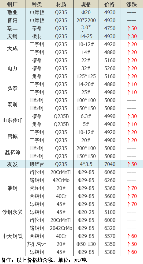 今日板、型、管、特鋼共15家鋼廠調價發(fā)布,其中: