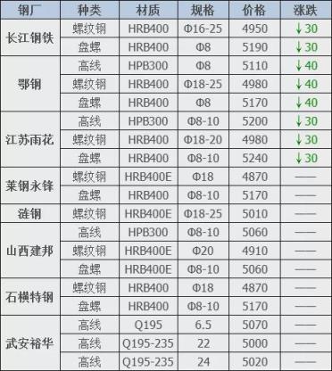 下調(diào)3家,占比37.5%,調(diào)價(jià)幅度30-40元/噸;