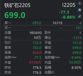 “受多種因素的影響,鐵礦石期貨大跌?!币晃煌顿Y者表示。