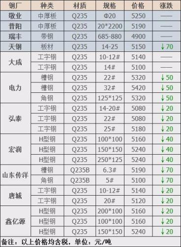 下調(diào)7家,占比63.7%,調(diào)價幅度20-70元/噸;