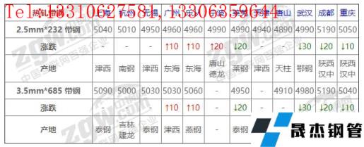 全國(guó)12個(gè)主要市場(chǎng)2.5mm*232 帶鋼平均價(jià)格4997元/噸,較上個(gè)交易日下調(diào)3元/噸。