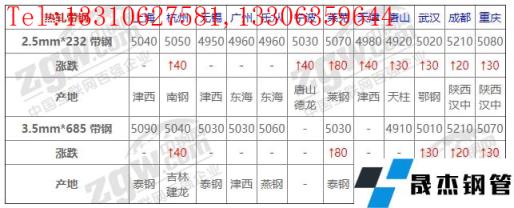 全國(guó)12個(gè)主要市場(chǎng)2.5mm*232 帶鋼平均價(jià)格5023元/噸,較上個(gè)交易日上調(diào)26元/噸。