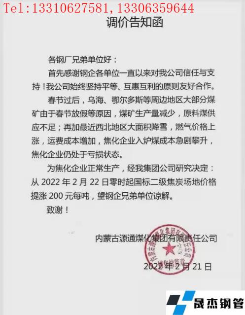 內(nèi)蒙古源通煤化集團調(diào)價