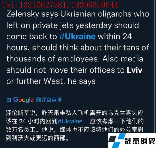 免責(zé)聲明:本網(wǎng)站(山東聊城晟杰無縫鋼管廠m.aremjf.cn)刊載的“突襲之下,烏克蘭無縫鋼管廠相繼停產(chǎn)運(yùn)輸中斷,鋼價(jià)會(huì)暴漲嗎?”等均源于網(wǎng)絡(luò),版權(quán)歸原作者所有,且僅代表原作者觀點(diǎn),本文所載信息僅供參考。轉(zhuǎn)載僅為學(xué)習(xí)與交流之目的,如無意中侵犯您的合法權(quán)益,請(qǐng)及時(shí)聯(lián)系刪除。本網(wǎng)站刊登此篇文章并不意味著本站贊同其觀點(diǎn)或證實(shí)其內(nèi)容的真實(shí)性,我們不對(duì)其科學(xué)性、嚴(yán)肅性等作任何形式的保證。如果侵犯了您的版權(quán),請(qǐng)盡快聯(lián)系我們予以撤銷,謝謝合作!