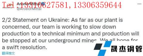 ArcelorMittal Kryvyi Rih 是烏克蘭最大的綜合鋼鐵公司,也是歐洲最大的無縫鋼管廠家之一,位于 Kryvyi Rih 市,擁有約 29,000 名員工和承包商。“正在努力將生產(chǎn)放緩至技術(shù)最低限度”,根據(jù)安賽樂米塔爾在倫敦發(fā)表的一份聲明,其地下礦山將停止生產(chǎn)。
