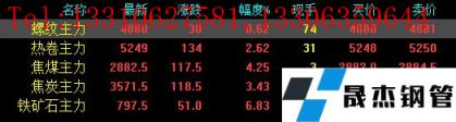 今日螺紋主力期貨漲30,收?qǐng)?bào)4880,漲幅0.62%;熱卷主力漲134,收?qǐng)?bào)5249,漲幅2.62%;焦煤主力漲117.5,收?qǐng)?bào)2882.5,漲幅4.25%;焦炭主力漲118.5,收?qǐng)?bào)3571.5,漲幅3.43%;鐵礦石主力漲51,收?qǐng)?bào)797.5,漲幅6.83%。