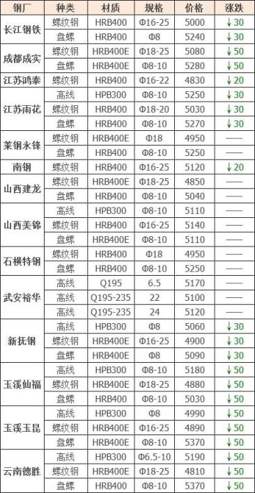 下調(diào)9家,占比64.3%,調(diào)價幅度20-50元/噸;