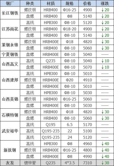 下調(diào)7家,占比63.6%,調(diào)價(jià)幅度10-40元/噸;
