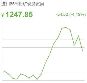 3月15日,進口鐵礦石價格普遍走低,進口65%粉礦現(xiàn)貨貿(mào)易價格跌54.52收于1247.85,進口65%粉礦到岸價格跌5.75收于176.82。