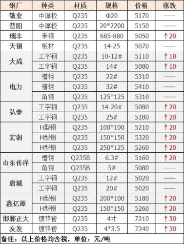 3月18日廣東東日特鋼漲60,不含稅到廠價:鋼筋切粒3550,邊角料3520,純鋼筋頭,模具鋼,優(yōu)重,馬蹄鐵3500,冷熱軋,重廢,機械生鐵3450,中厚剪3300-3400,單位:元/噸。