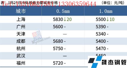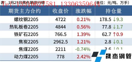 冷軋板卷:1月25日,全國24個主要城市1.0mm冷卷均價5466元/噸,較上個交易日下跌1元/噸。現(xiàn)貨市場已經(jīng)進入有價無市狀態(tài)。冬奧會臨近,部分無縫鋼管廠受到環(huán)保政策的影響,陸續(xù)發(fā)布停產(chǎn)檢修計劃,對市場資源供給有一定影響,再加上原料價格上漲,使得目前冷軋板卷價格處于相對高位。綜合來看,故預(yù)計26日國內(nèi)冷軋板卷價格或?qū)⑵椒€(wěn)運行。