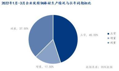 1、2022年1-3月的優(yōu)特鋼棒材生產(chǎn)情況與往年同期相比近一半處于正常水平,有37%的無縫鋼管廠產(chǎn)量不及去年同期。