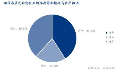 2、樣本企業(yè)春節(jié)前后,無縫鋼管廠庫(kù)存有40%與去年同期水平相當(dāng),另有40%較去年同期庫(kù)存下降,只有20%庫(kù)存同比上升。