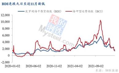 波羅的海干散貨運價指數(shù)(BDI)是反映全球礦石、煤炭等大宗散貨運價的權(quán)威指標(biāo)。近三個月來,因為所有型船需求疲軟,截止2022年1月24日,波羅的海干散貨運價指數(shù)連續(xù)第十二個交易日下滑至1391點,為去年2月以來最低水準;BCI跌至891點為2020年6月以來新低。