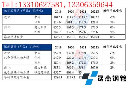 全球海運鐵礦石貿(mào)易在2021全年達到15.24億噸,同比增長1.5%,但增速預(yù)計將在2022年繼續(xù)放緩,因為中國的進口預(yù)計將繼續(xù)從2020的創(chuàng)紀錄水平回落,這是由于鋼材需求疲軟和鋼鐵產(chǎn)量的限制。從的247無縫鋼管廠家鐵水生產(chǎn)節(jié)奏也能展現(xiàn)端倪:10月開始,鐵水產(chǎn)量就一路走低,最終于12月中旬,247樣本鐵水日產(chǎn)量跌至歷史最低值198.7萬噸。