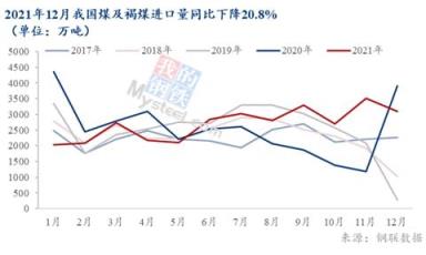 煤炭是與鐵礦石海運貿(mào)易體量相當(dāng)?shù)牧硪淮笞谏唐罚?0月開始國內(nèi)原煤產(chǎn)量在增產(chǎn)保供下不斷提高,也變相著削弱中國對海外煤的依賴:我國10-12月份原煤產(chǎn)量分別為3.6、3.7、3.8億噸屢創(chuàng)國內(nèi)新高,對海外煤炭需求逐漸減弱,12月我國進口煤炭同比下滑20%。步入2022年1月,印尼煤炭出口禁令對海運市場算是雪上加霜。