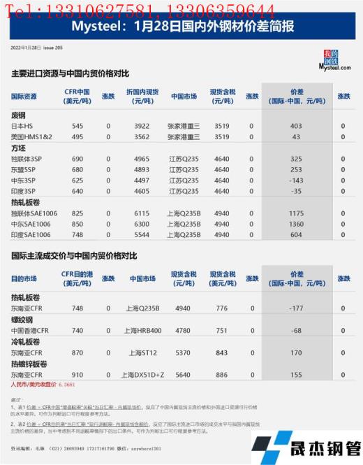 免責聲明:本網(wǎng)站(山東聊城晟杰無縫鋼管廠m.aremjf.cn)刊載的“2022年01月28日日報:國內外鋼材_無縫鋼管價差匯總(2022.1.28)”等均源于網(wǎng)絡,版權歸原作者所有,且僅代表原作者觀點,本文所載信息僅供參考。轉載僅為學習與交流之目的,如無意中侵犯您的合法權益,請及時聯(lián)系刪除。本網(wǎng)站刊登此篇文章并不意味著本站贊同其觀點或證實其內容的真實性,我們不對其科學性、嚴肅性等作任何形式的保證。如果侵犯了您的版權,請盡快聯(lián)系我們予以撤銷,謝謝合作!