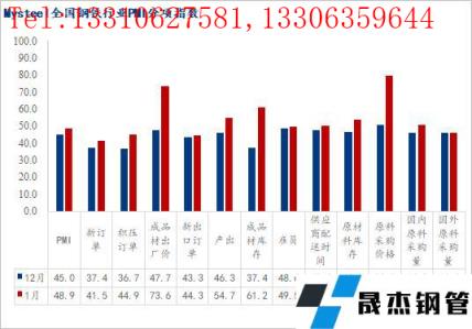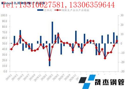 1月份,全國(guó)鋼鐵行業(yè)無(wú)縫厚壁鋼管廠家產(chǎn)出指數(shù)較12月份回升8.4個(gè)百分點(diǎn),終值54.7。具體來(lái)看,進(jìn)入1月份,各地對(duì)長(zhǎng)流程無(wú)縫厚壁鋼管廠家限產(chǎn)政策明顯放松,各地高爐陸續(xù)復(fù)產(chǎn),粗鋼產(chǎn)量明顯回升。至后半月,隨著春節(jié)假期臨近,短流程無(wú)縫厚壁鋼管廠家陸續(xù)放假,無(wú)縫厚壁鋼管廠家產(chǎn)量小幅回落。整體而言,1月份國(guó)內(nèi)鋼鐵產(chǎn)出明顯回升。