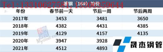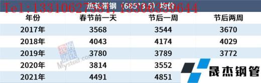 小編匯總近5年春節(jié)后兩周全國(guó)主要城市13大品種厚壁無(wú)縫鋼管均價(jià)走勢(shì),以供參考。