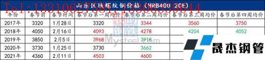附:近五年山東建筑厚壁無縫鋼管春節(jié)均價走勢: