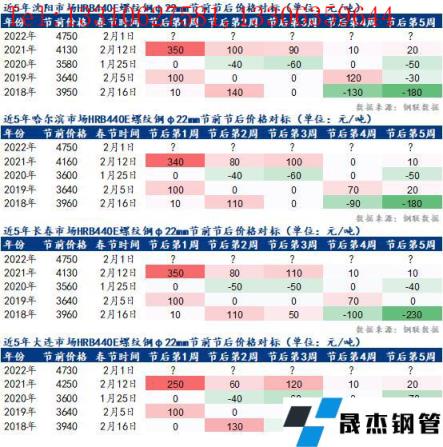 小編匯總了近5年春節(jié)前后東北建筑厚壁無(wú)縫鋼管市場(chǎng)價(jià)格變化情況,除2020年受公共衛(wèi)生事件影響平穩(wěn)運(yùn)行外,其余年份節(jié)后首周多數(shù)都是“開(kāi)門(mén)紅”狀態(tài),在第4-5周基本會(huì)出現(xiàn)沖高后回調(diào)的情況。具體情況如下: