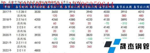 筆者回顧了近5年西南區(qū)域各主要建筑厚壁無(wú)縫鋼管市場(chǎng)價(jià)格,通過(guò)對(duì)節(jié)后六周價(jià)格變化的對(duì)比得出,除2020年春節(jié)后受公共衛(wèi)生事件影響,其余時(shí)間節(jié)后前兩周基本以“開(kāi)門(mén)紅”的上漲行情為主。