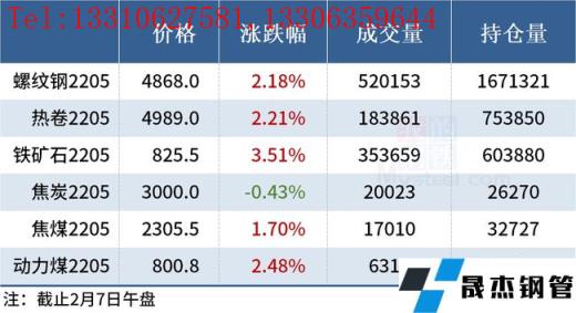 免責(zé)聲明:本網(wǎng)站(山東聊城晟杰無縫鋼管廠m.aremjf.cn)刊載的“2022年02月07日午報:鋼價全線上漲,鐵礦石期貨漲逾3%”等均源于網(wǎng)絡(luò),版權(quán)歸原作者所有,且僅代表原作者觀點,本文所載信息僅供參考。轉(zhuǎn)載僅為學(xué)習(xí)與交流之目的,如無意中侵犯您的合法權(quán)益,請及時聯(lián)系刪除。本網(wǎng)站刊登此篇文章并不意味著本站贊同其觀點或證實其內(nèi)容的真實性,我們不對其科學(xué)性、嚴(yán)肅性等作任何形式的保證。如果侵犯了您的版權(quán),請盡快聯(lián)系我們予以撤銷,謝謝合作!