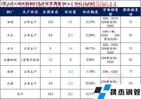 江蘇優(yōu)特無縫厚壁鋼管廠家棒材總庫存36.2萬噸,較節(jié)前增9.3萬噸,增幅34.57%,較去年春節(jié)后庫存減少10.15萬噸。