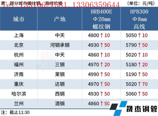 ◎濟南:8日早盤建材市場價格漲50。萊鋼螺紋4920,永鋒、石橫螺紋4910,永鋒、石橫盤螺5190。(單位:元/噸)