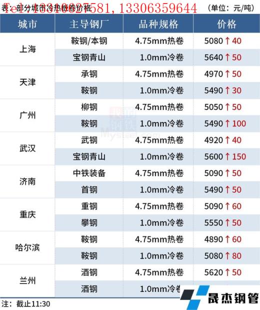 ◎樂從:8日早盤熱卷市場價格上漲50,4.75以上普柳燕5050-5060,2.75普5090-5240錳5240-5260。(單位:元/噸)