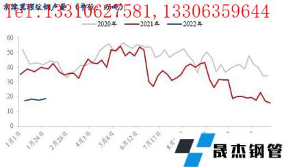 從上圖可以看出,1月份京津冀建材無縫厚壁鋼管廠家的螺紋鋼產(chǎn)量持續(xù)在低位徘徊,截至1月底,螺紋鋼周產(chǎn)量降至18.6萬噸,產(chǎn)能利用率僅為19.87%,依然是敬業(yè)、承鋼、樂鋼、鑫達(dá)等無縫厚壁鋼管廠家的螺紋鋼產(chǎn)線在產(chǎn),且這些無縫厚壁鋼管廠家螺紋鋼產(chǎn)線都未正常生產(chǎn)。2月份,京津冀建材無縫厚壁鋼管廠家的螺紋鋼產(chǎn)量變動不大,其中承鋼計劃新增一條螺紋產(chǎn)線復(fù)產(chǎn),全月計劃建材產(chǎn)量21萬噸左右,較上月實(shí)際產(chǎn)量提升9萬噸左右;樂鋼2月份高爐檢修,20日之前減少一條螺紋產(chǎn)線的產(chǎn)量,產(chǎn)量月環(huán)比減少7萬噸左右,且主要減少對京津區(qū)域的投放。另外東北、西北無縫厚壁鋼管廠家資源資源發(fā)往華南的周期較長,風(fēng)險度較大,因此東北、西北無縫厚壁鋼管廠家資源傾向于發(fā)往京津冀區(qū)域,其中海鑫計劃于1月底-2月份發(fā)往北京的資源量4萬噸左右,西林計劃往北京投放3-4萬噸,另外陜西龍鋼在1月份已向北京投放2萬噸左右資源。