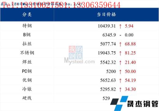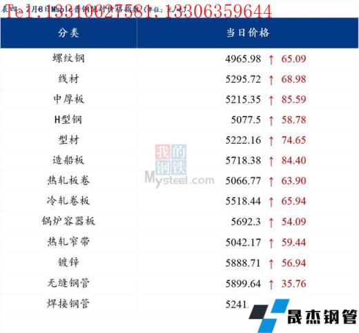 2月8日普鋼絕對(duì)價(jià)格指數(shù)變化:綜合指數(shù)5192.08,上漲67.61;螺紋鋼指數(shù)4965.98,上漲65.09;線材指數(shù)5295.72,上漲68.98;熱軋板卷指數(shù)5066.77,上漲63.9;冷軋板卷指數(shù)5518.44,上漲65.94;中厚板指數(shù)5215.35,上漲85.59。